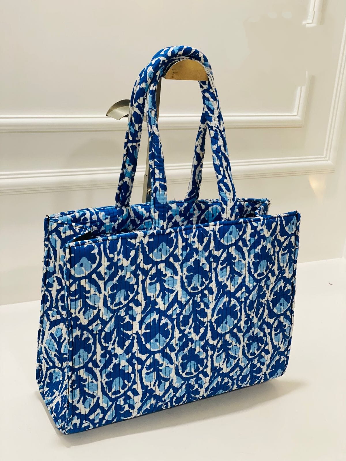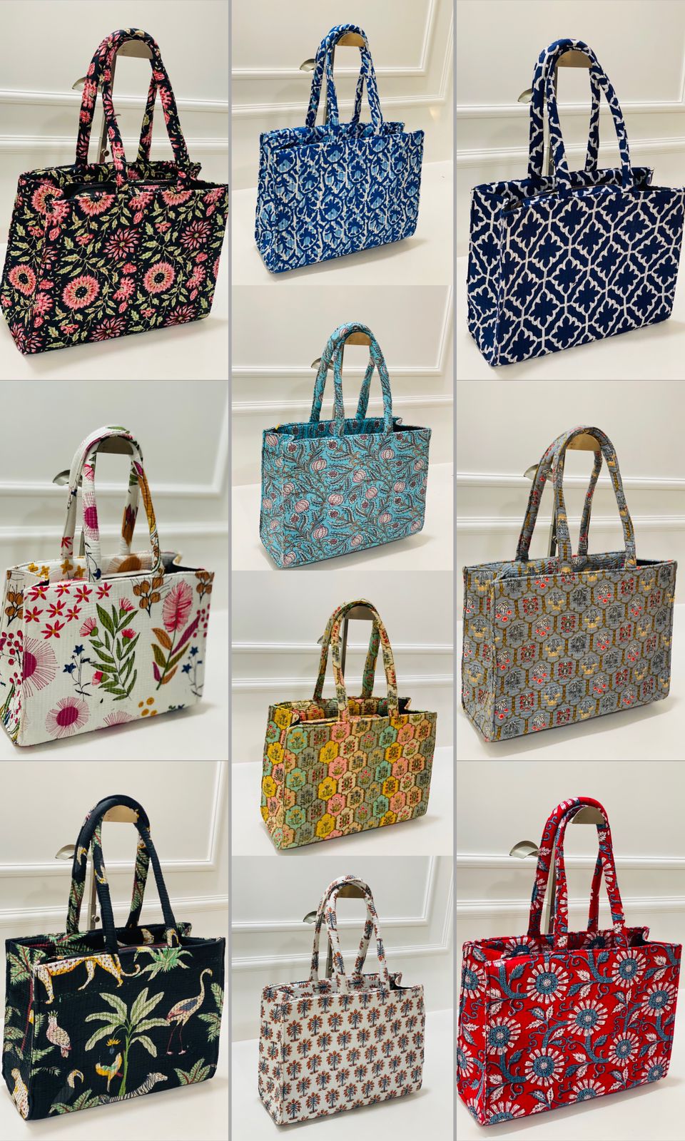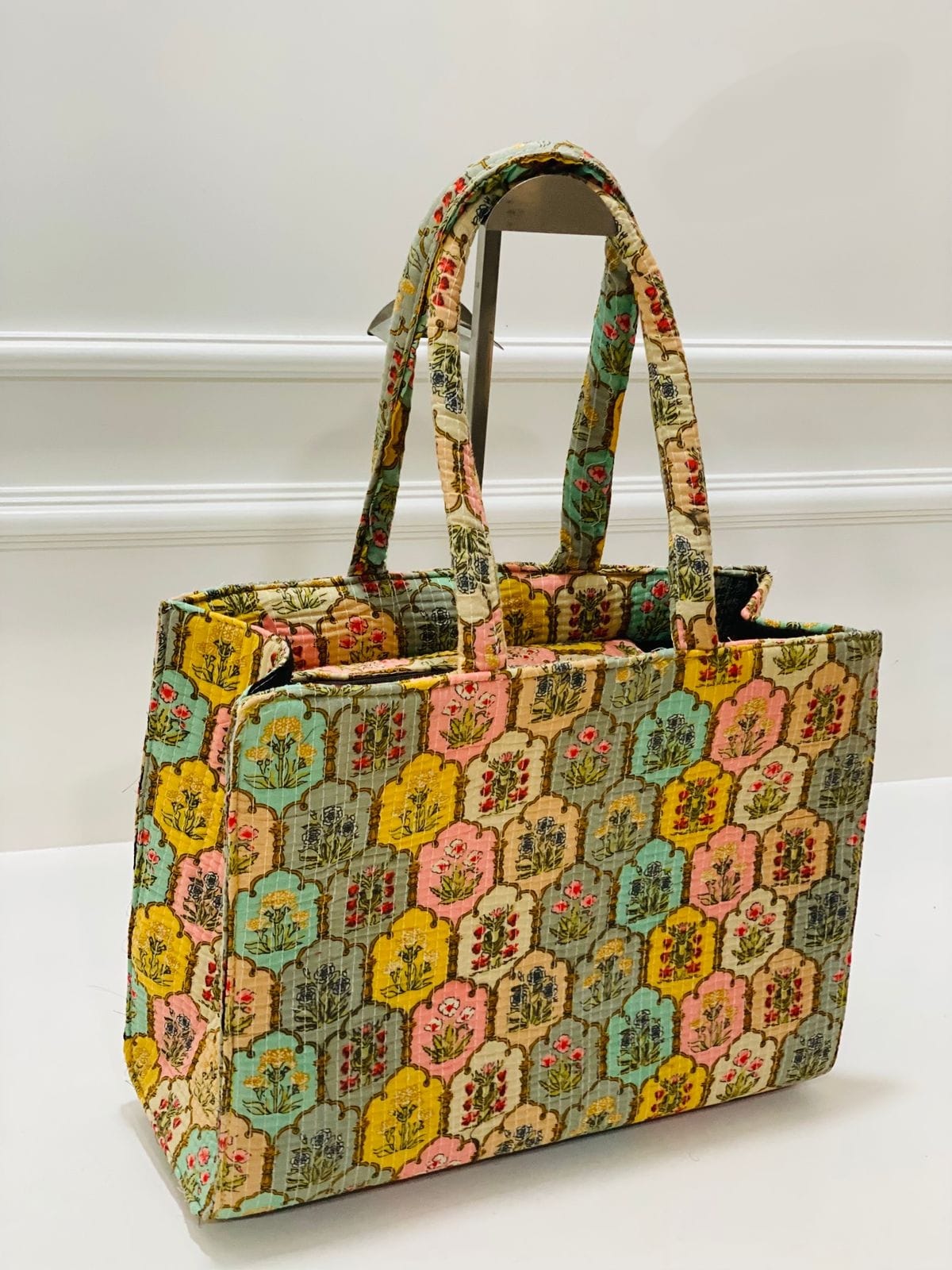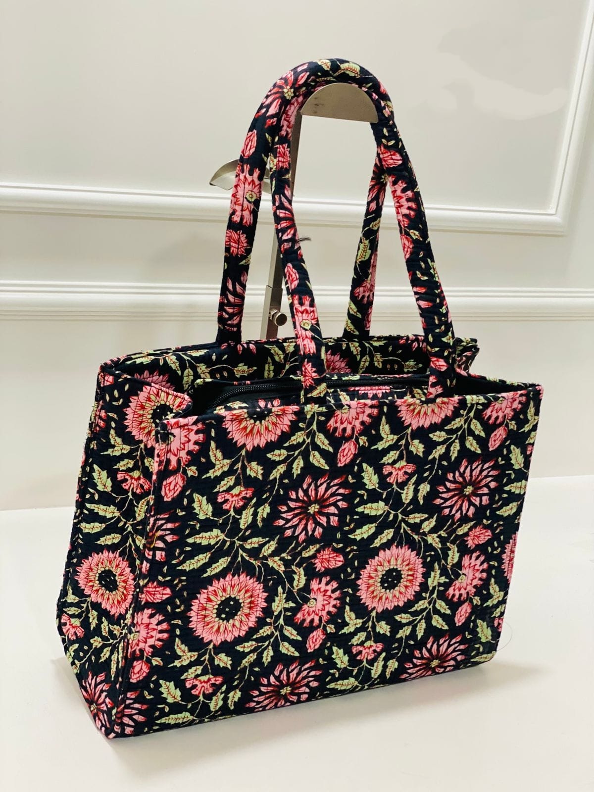 Cotton Quilted Box Tote Bags,Bagru Hand Block Print