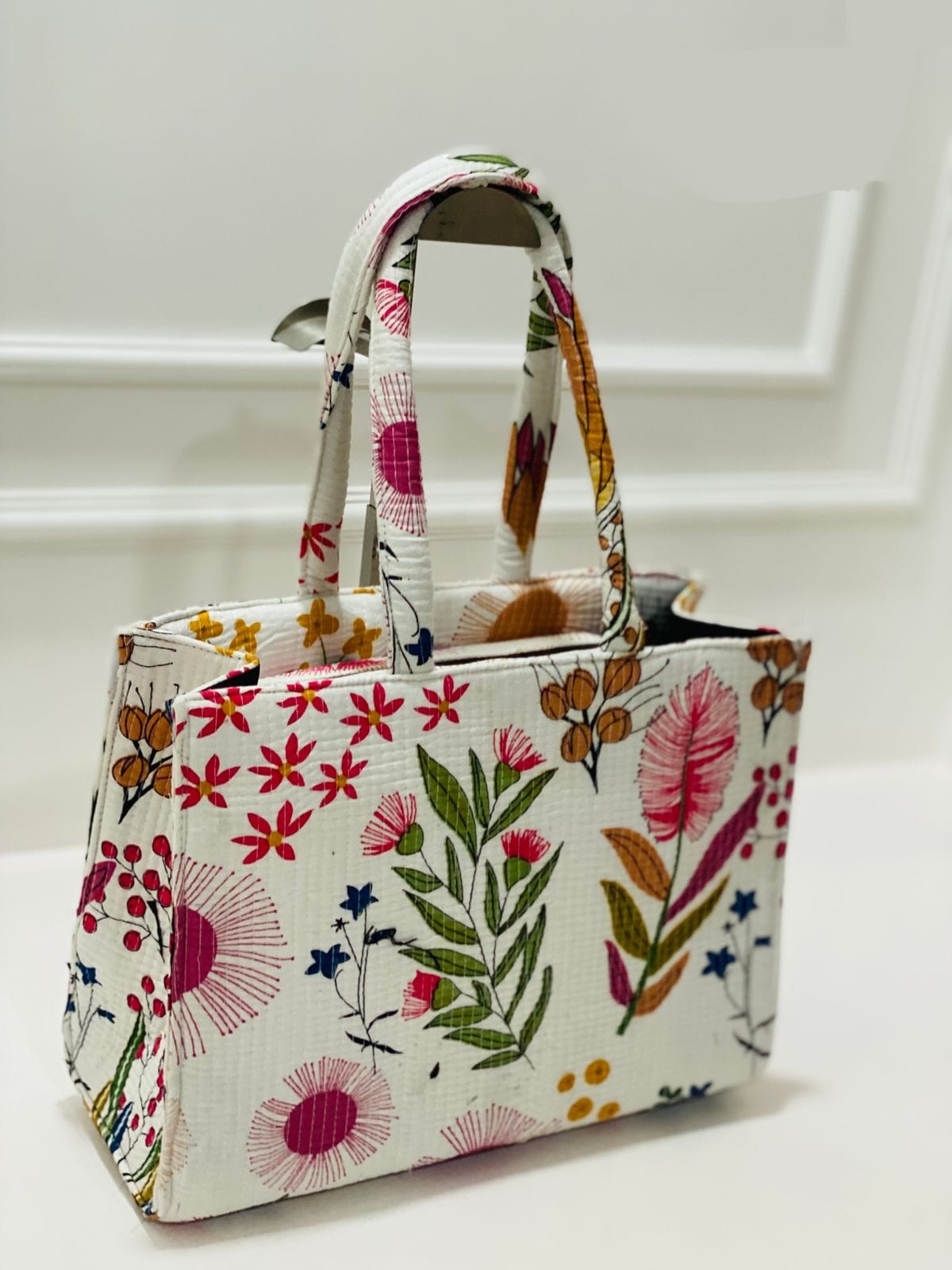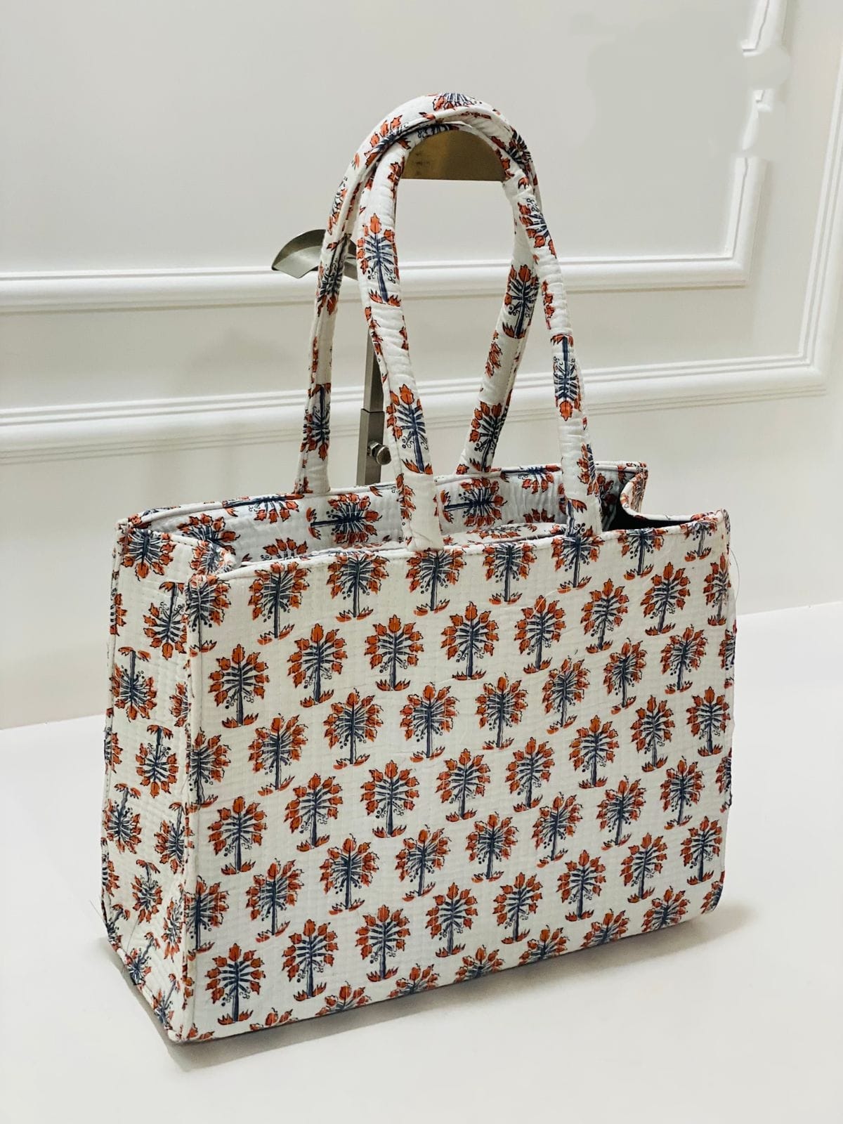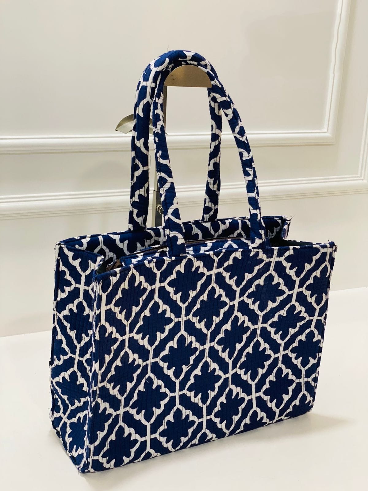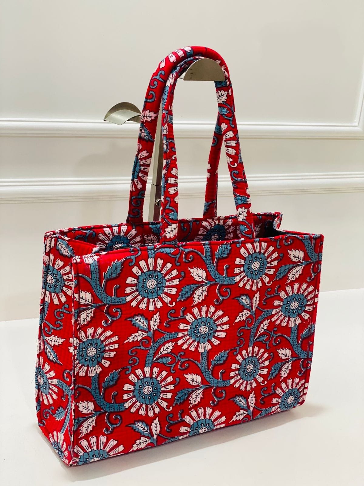 Cotton Quilted Box Tote Bags,Bagru Hand Block Print