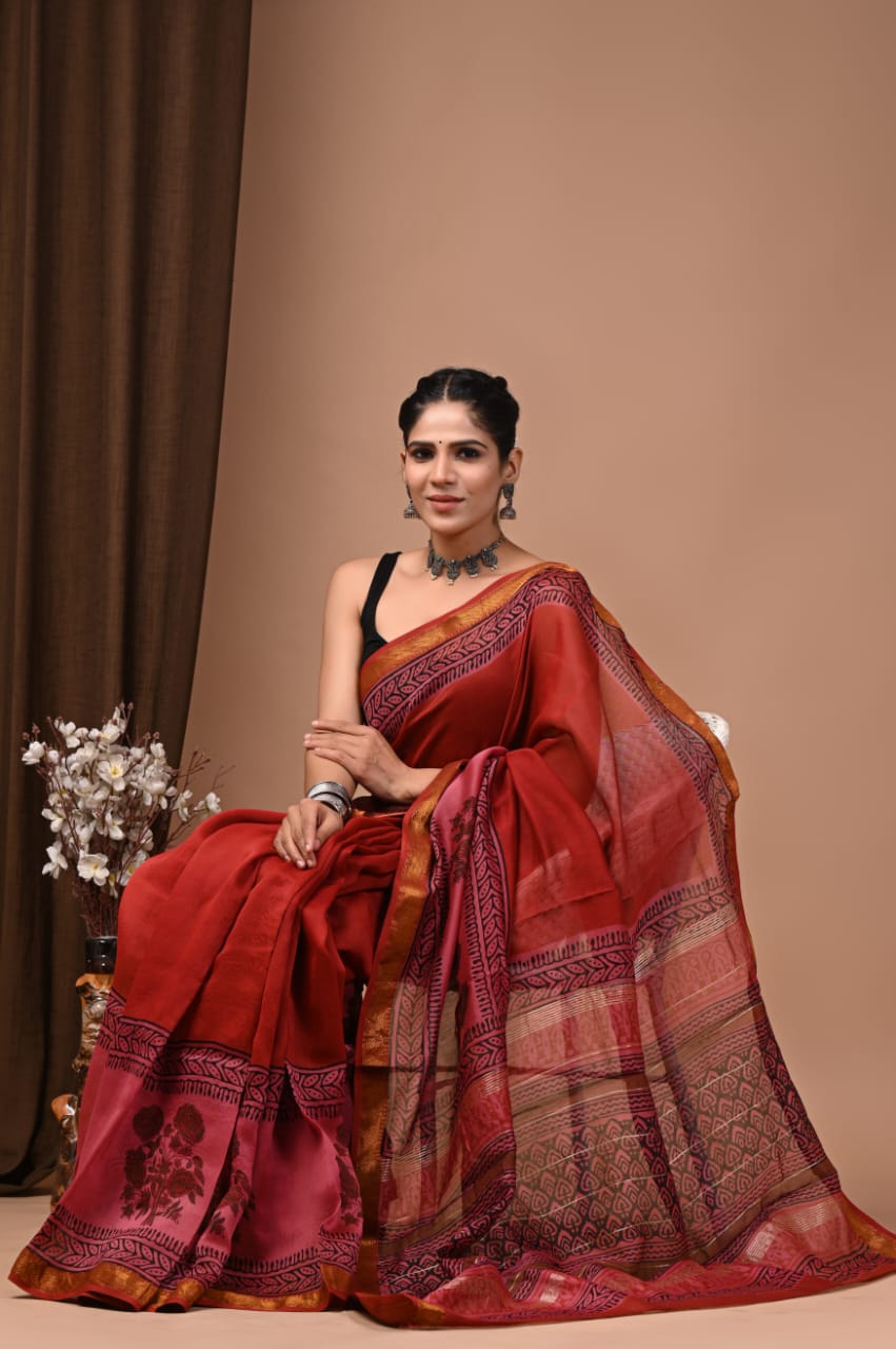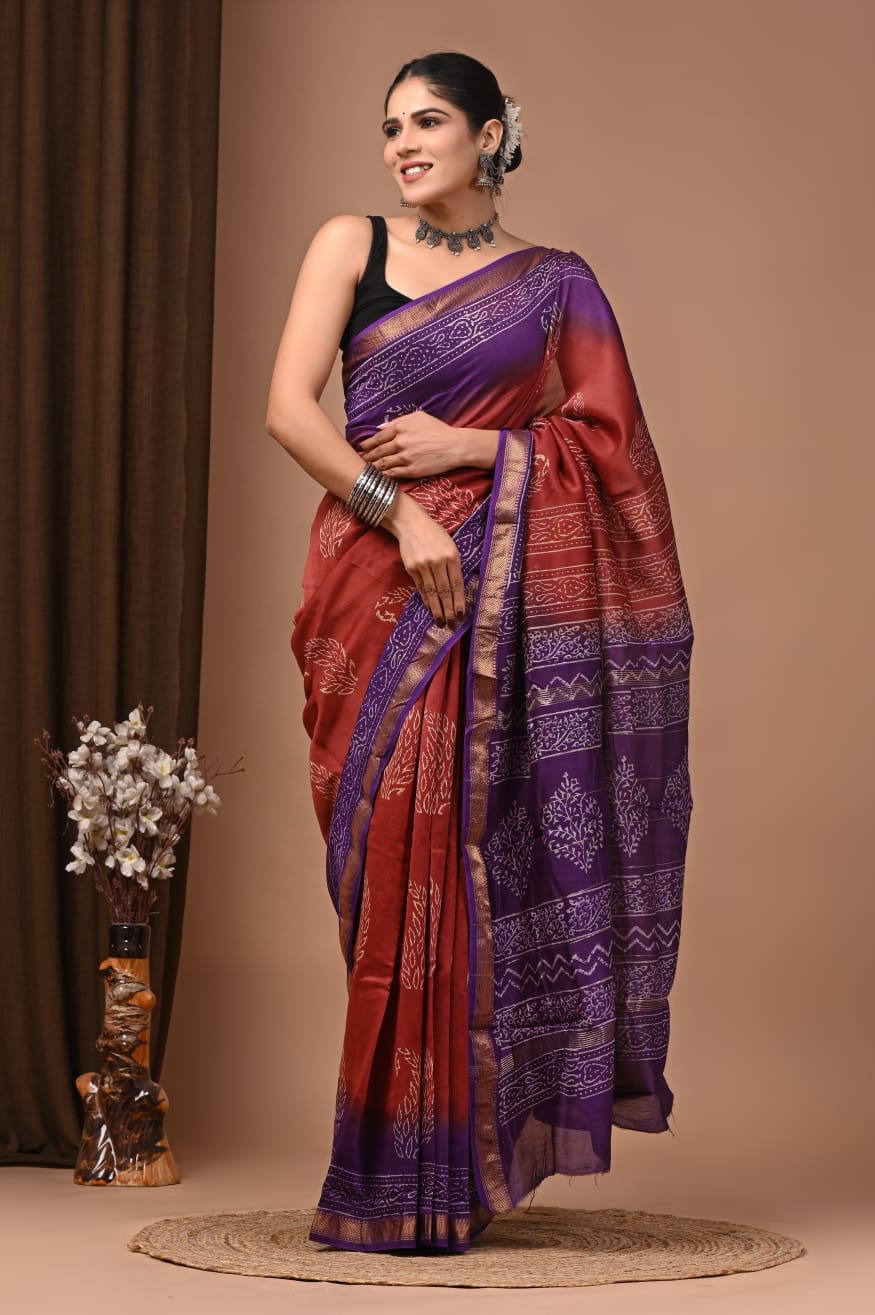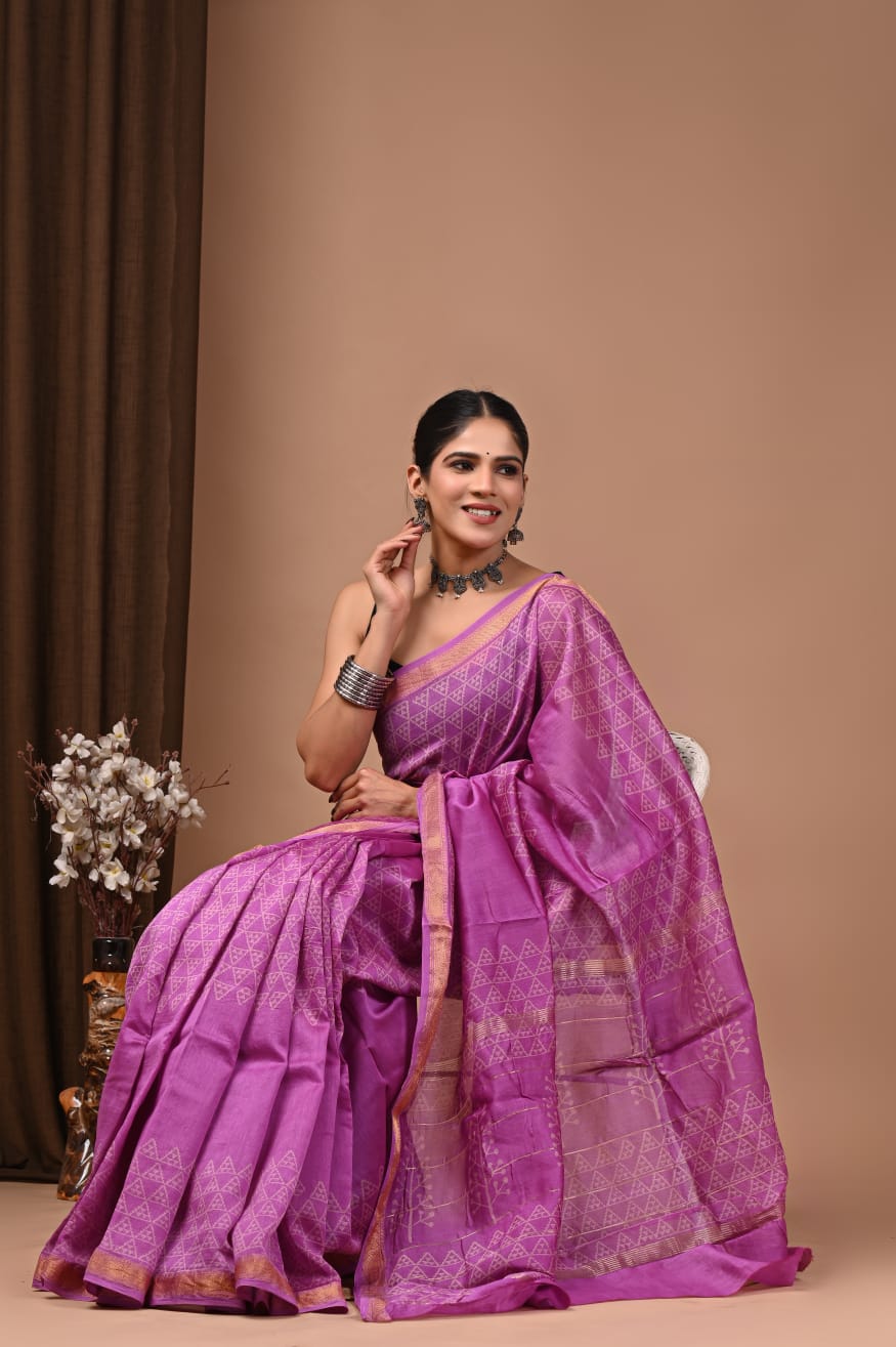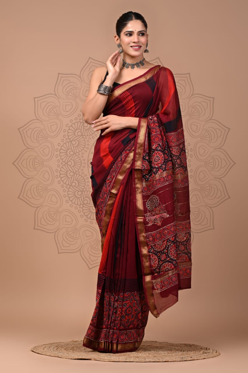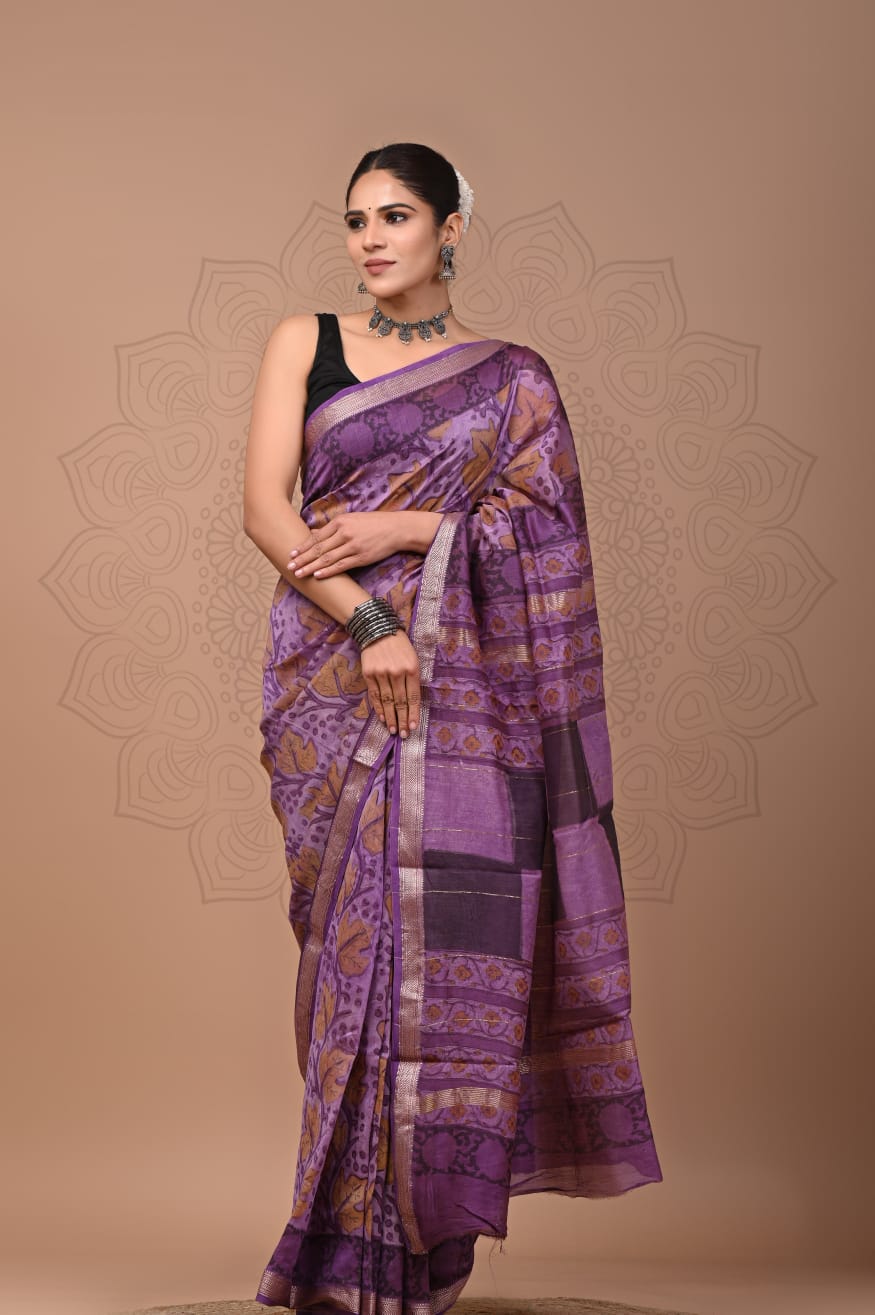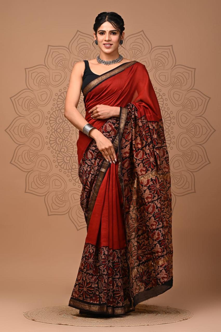Beautiful Pure Maheshwari Traditional Hand Black Printed Silk Sarees