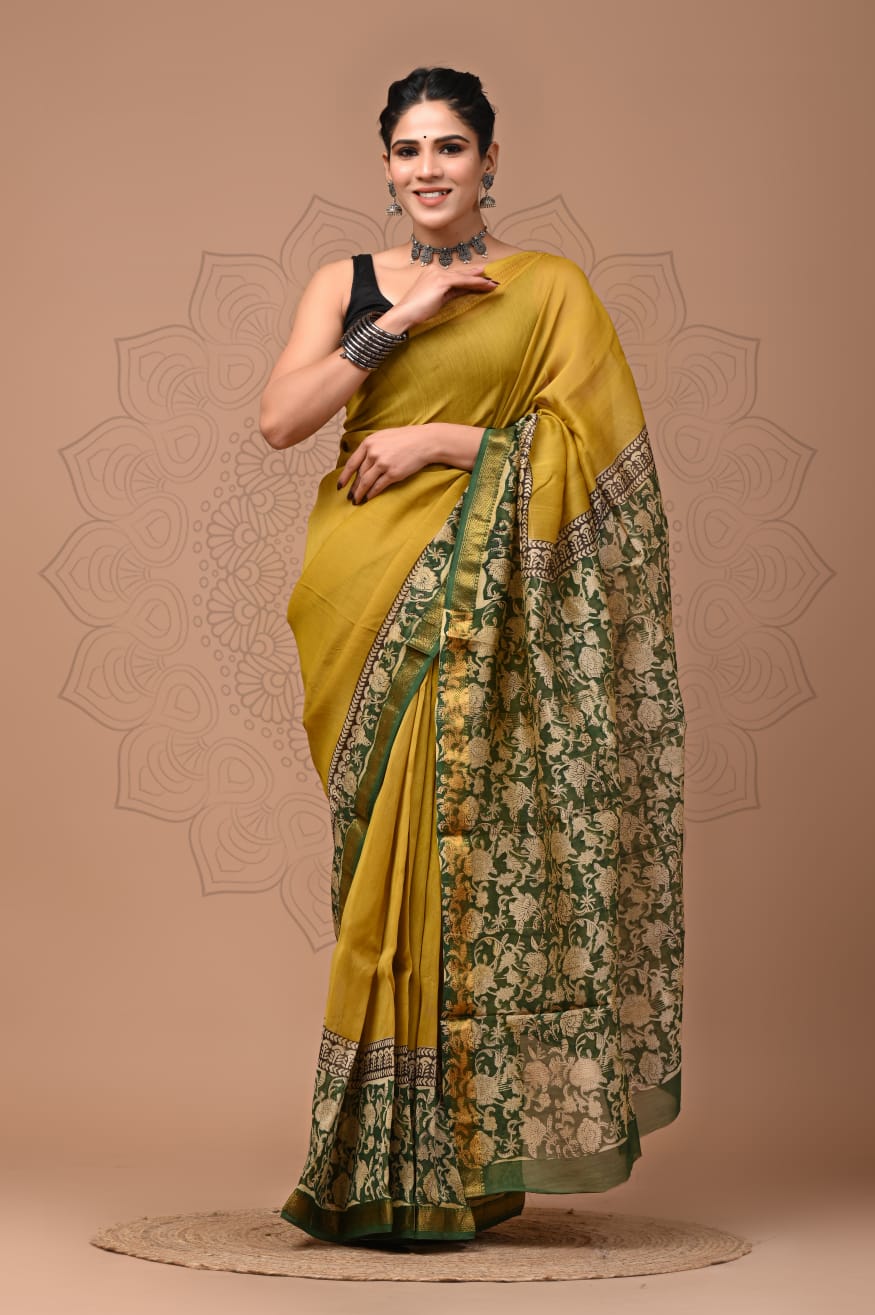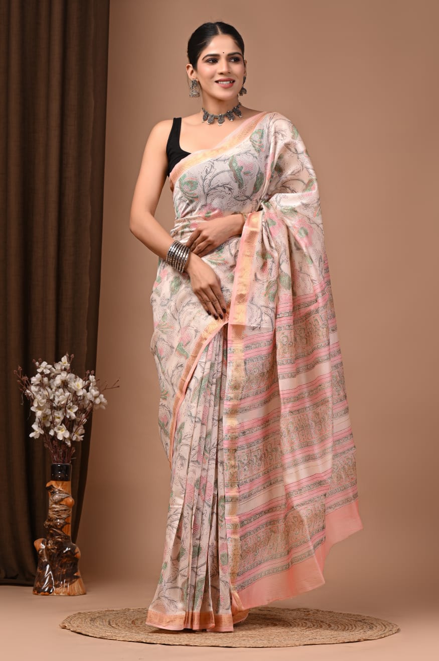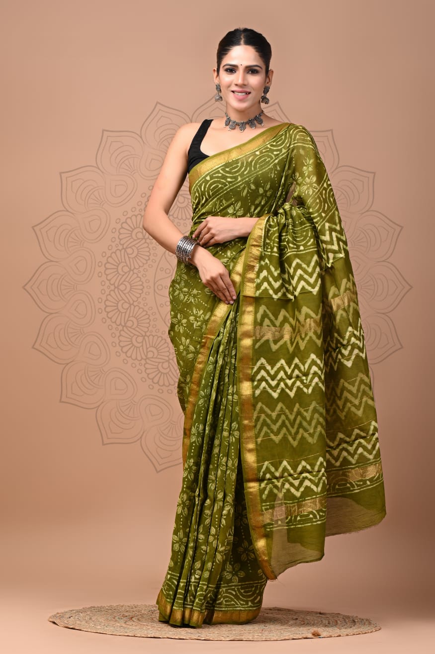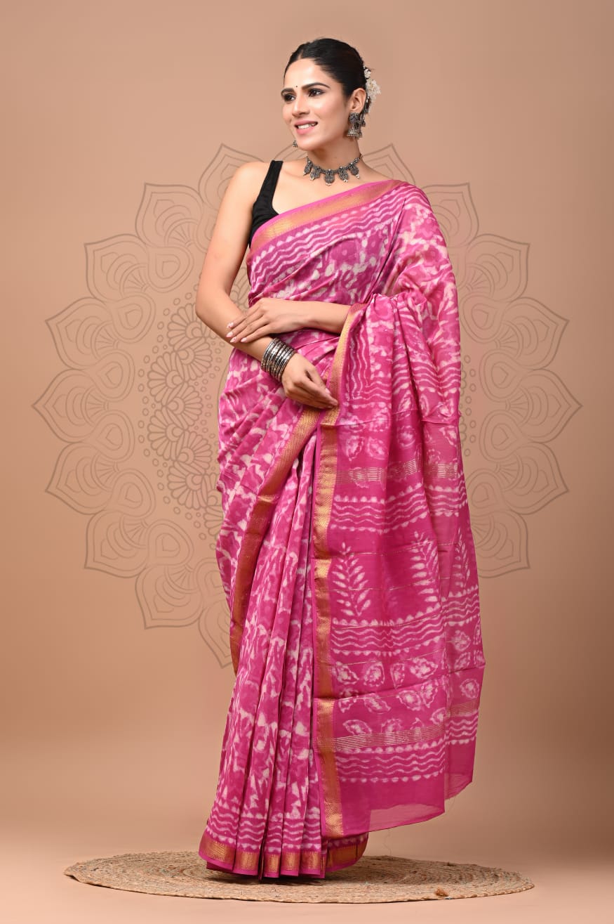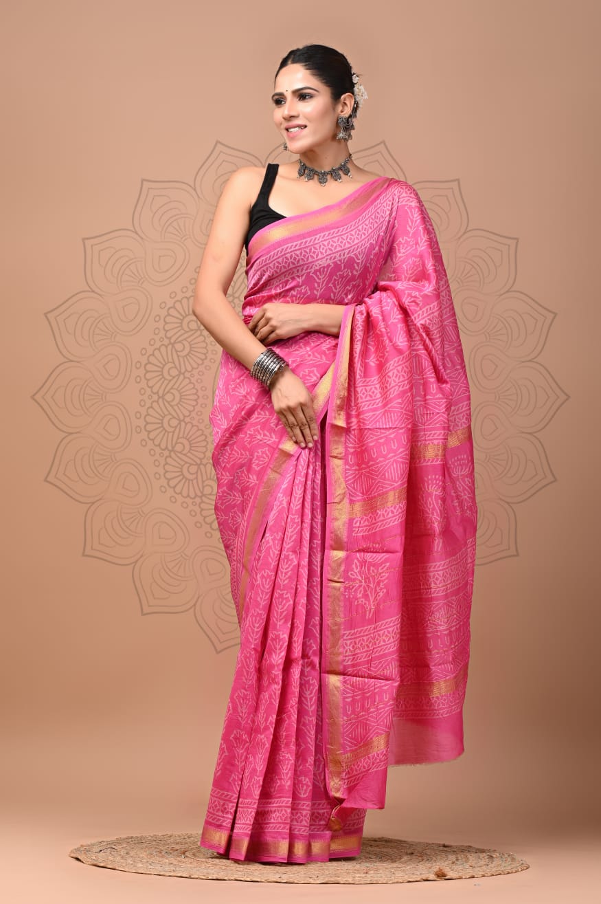 Beautiful Pure Maheshwari Traditional Hand Black Printed Silk Sarees