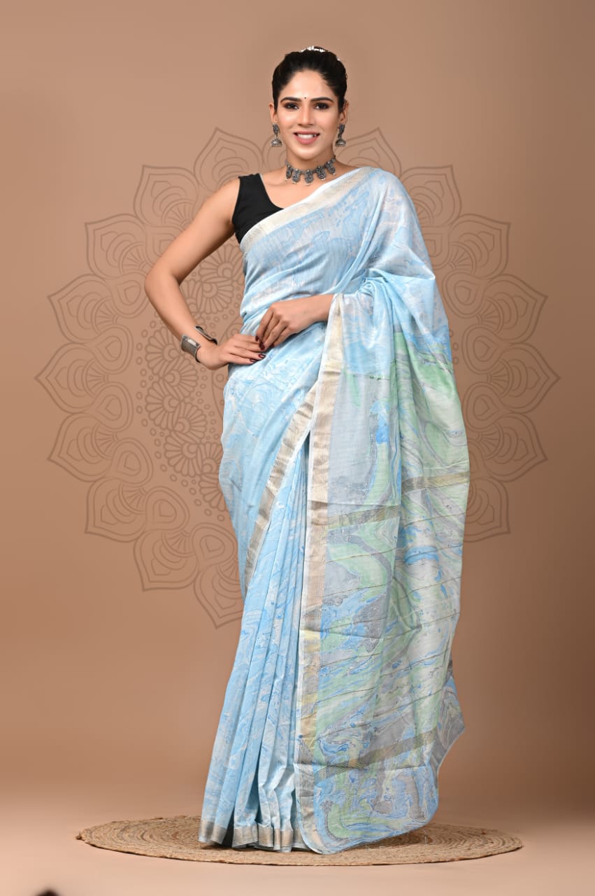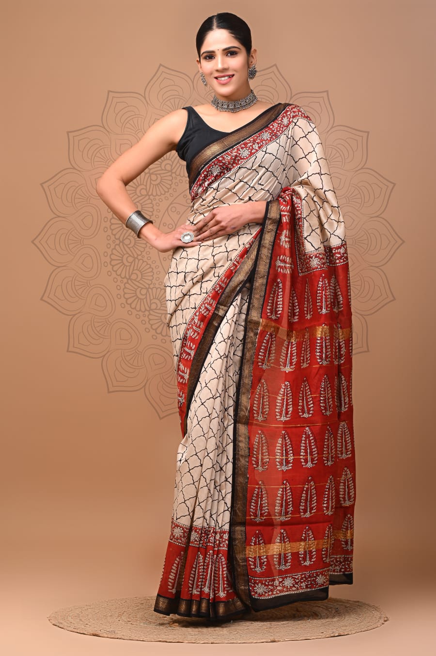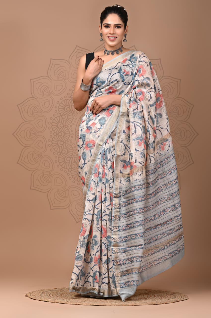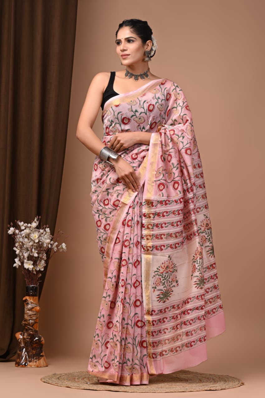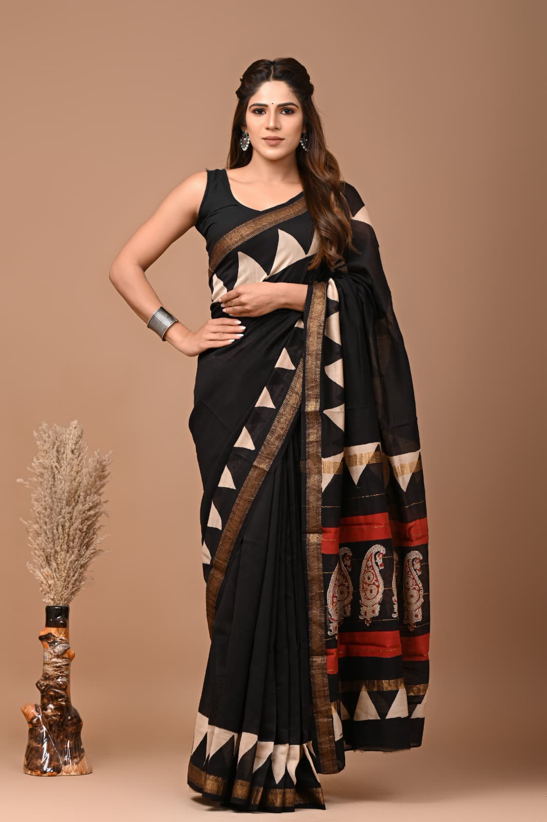 Beautiful Pure Maheshwari Traditional Hand Black Printed Silk Sarees