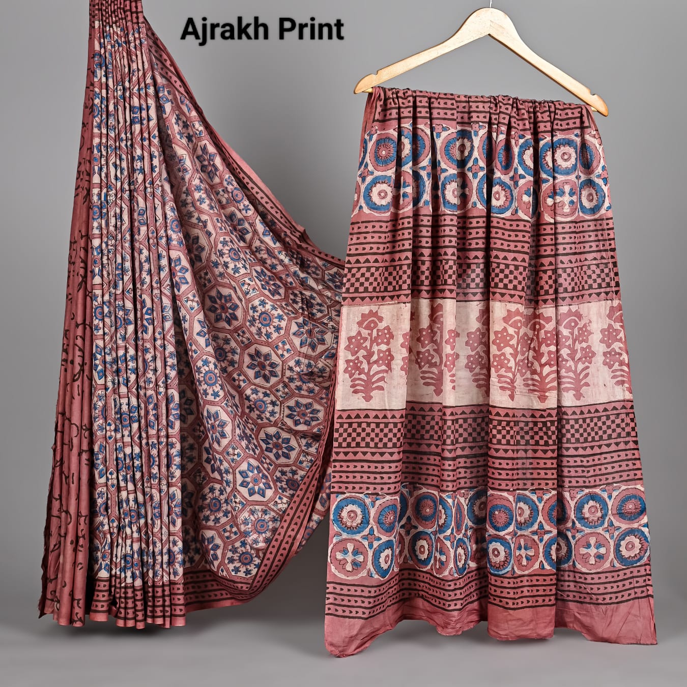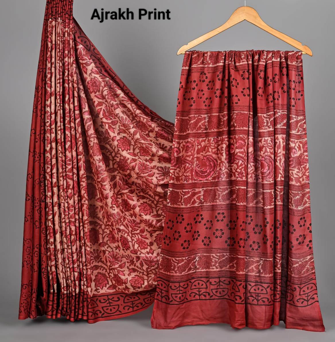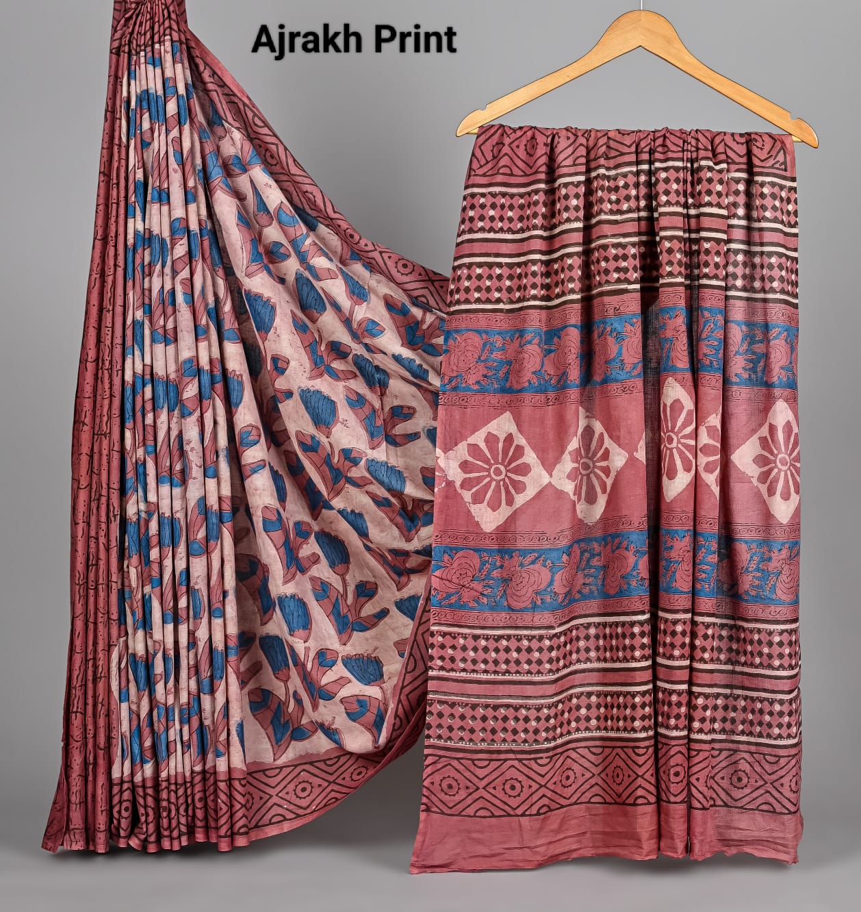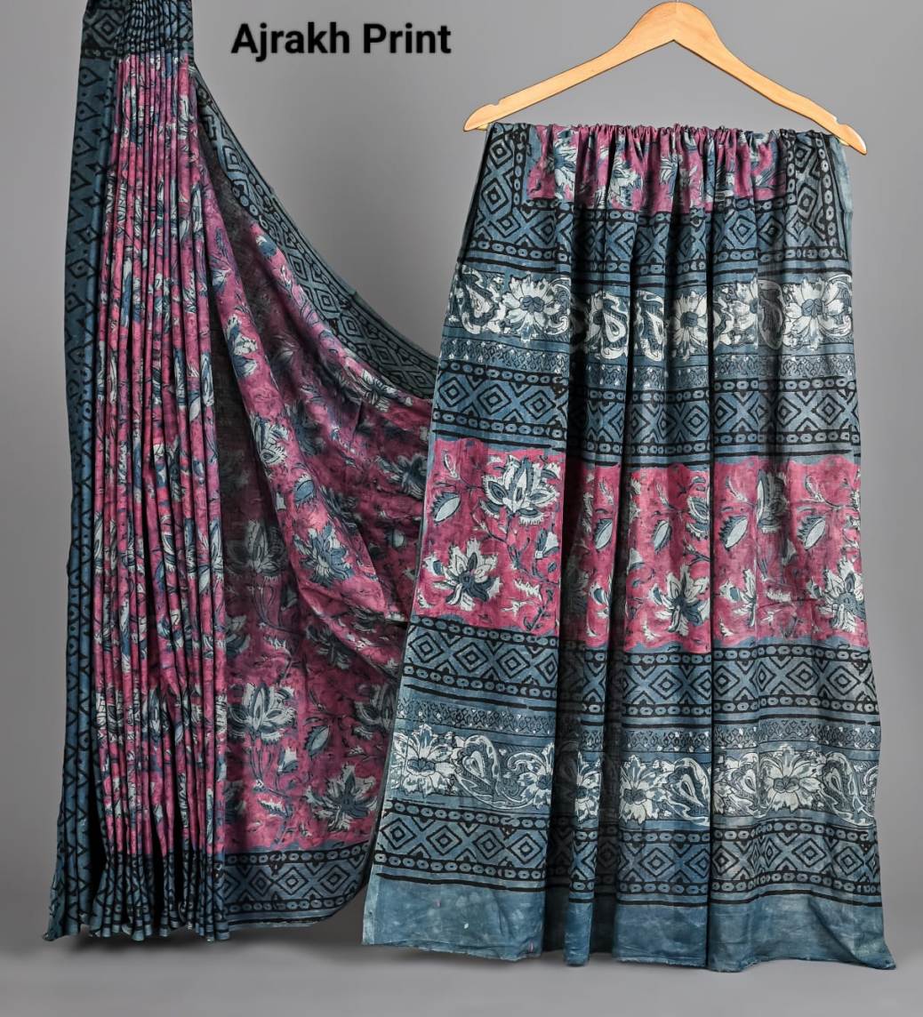 Soft Mulmul Cotton Hand Ajrakh Printed Sarees