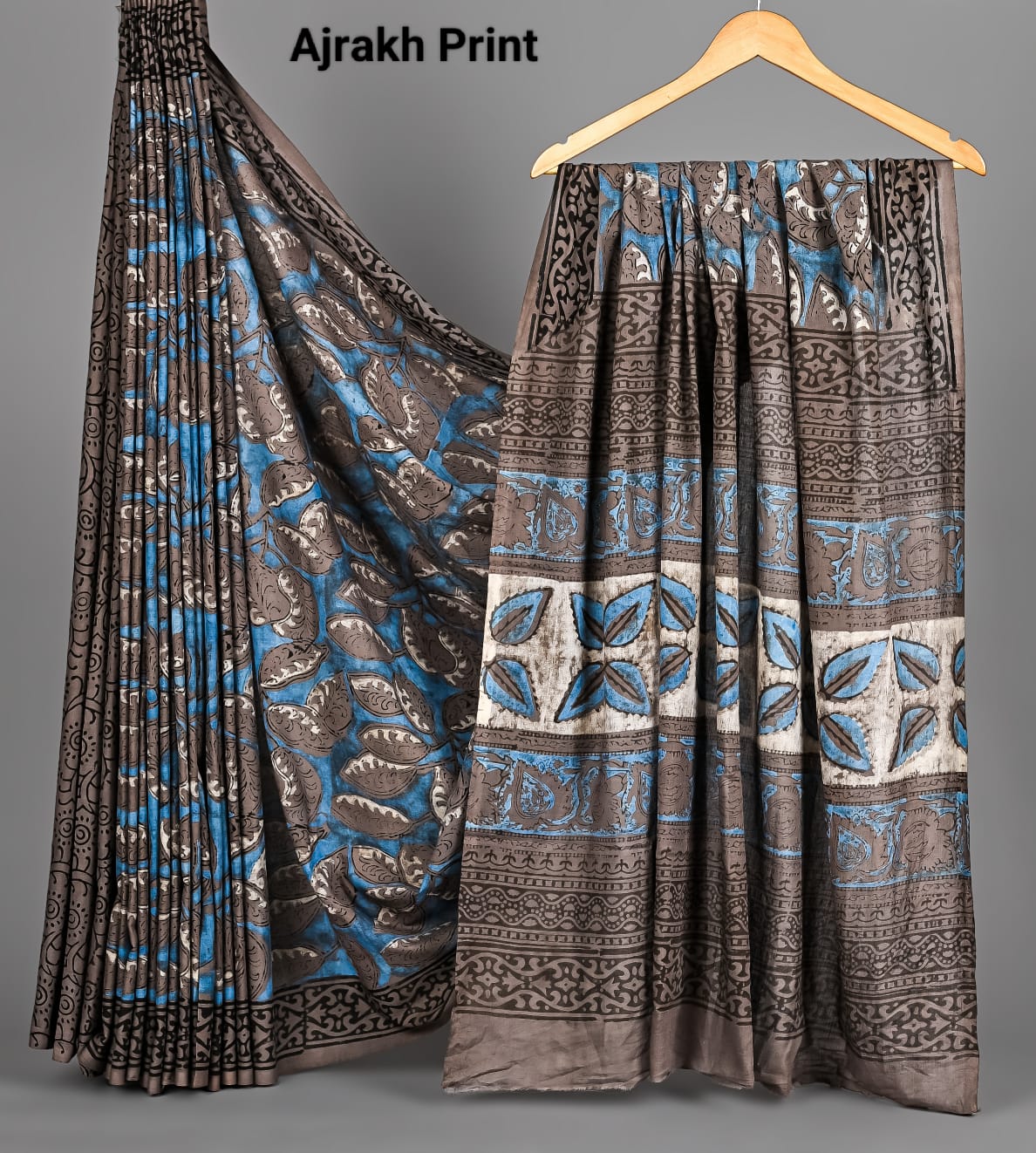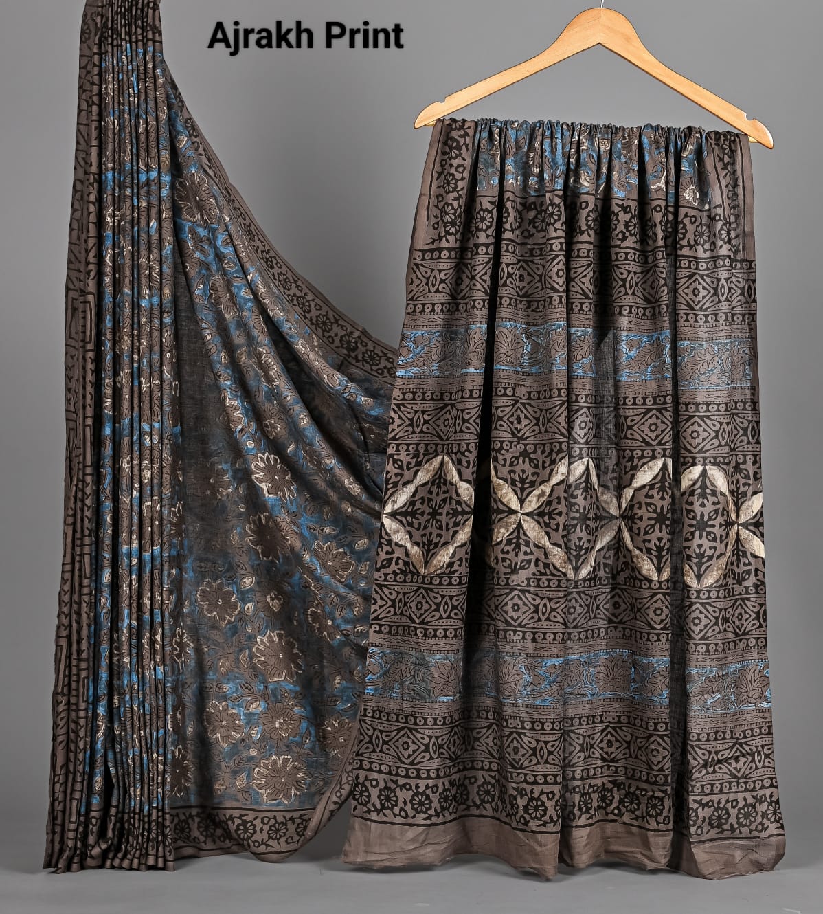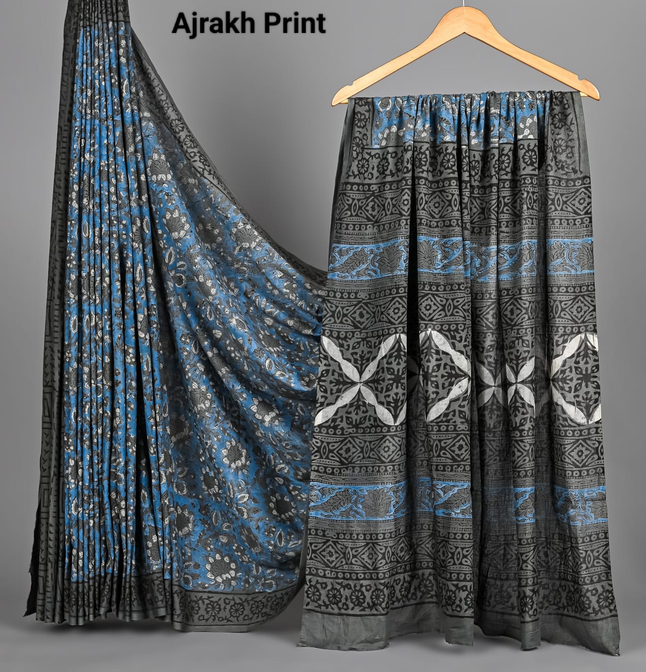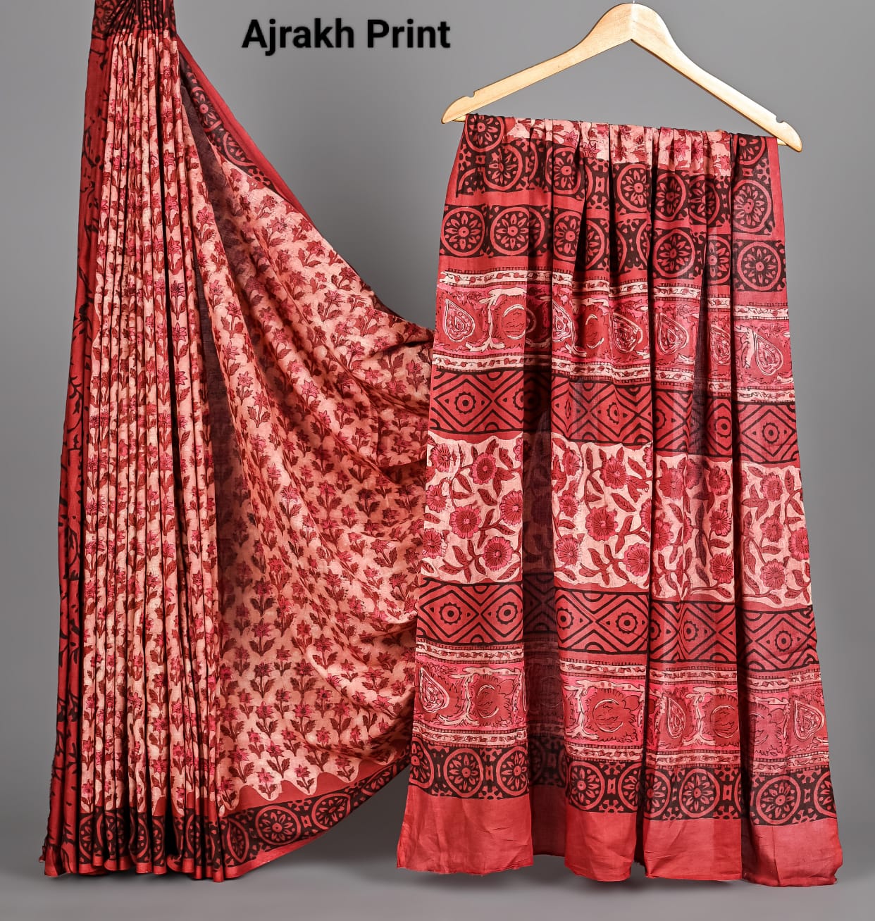Soft Mulmul Cotton Hand Ajrakh Printed Sarees