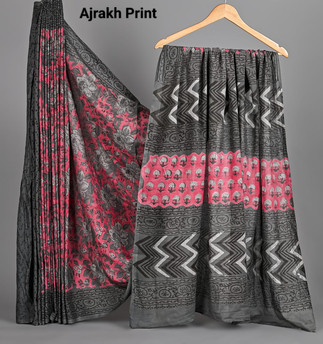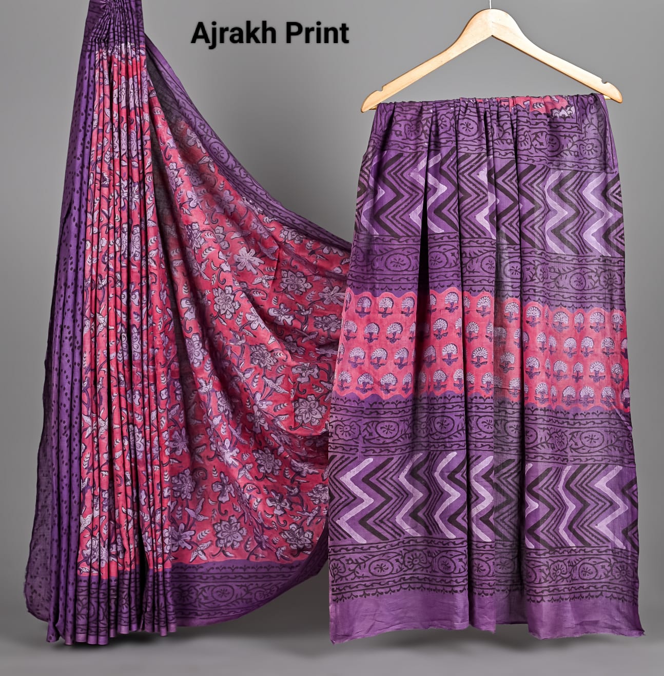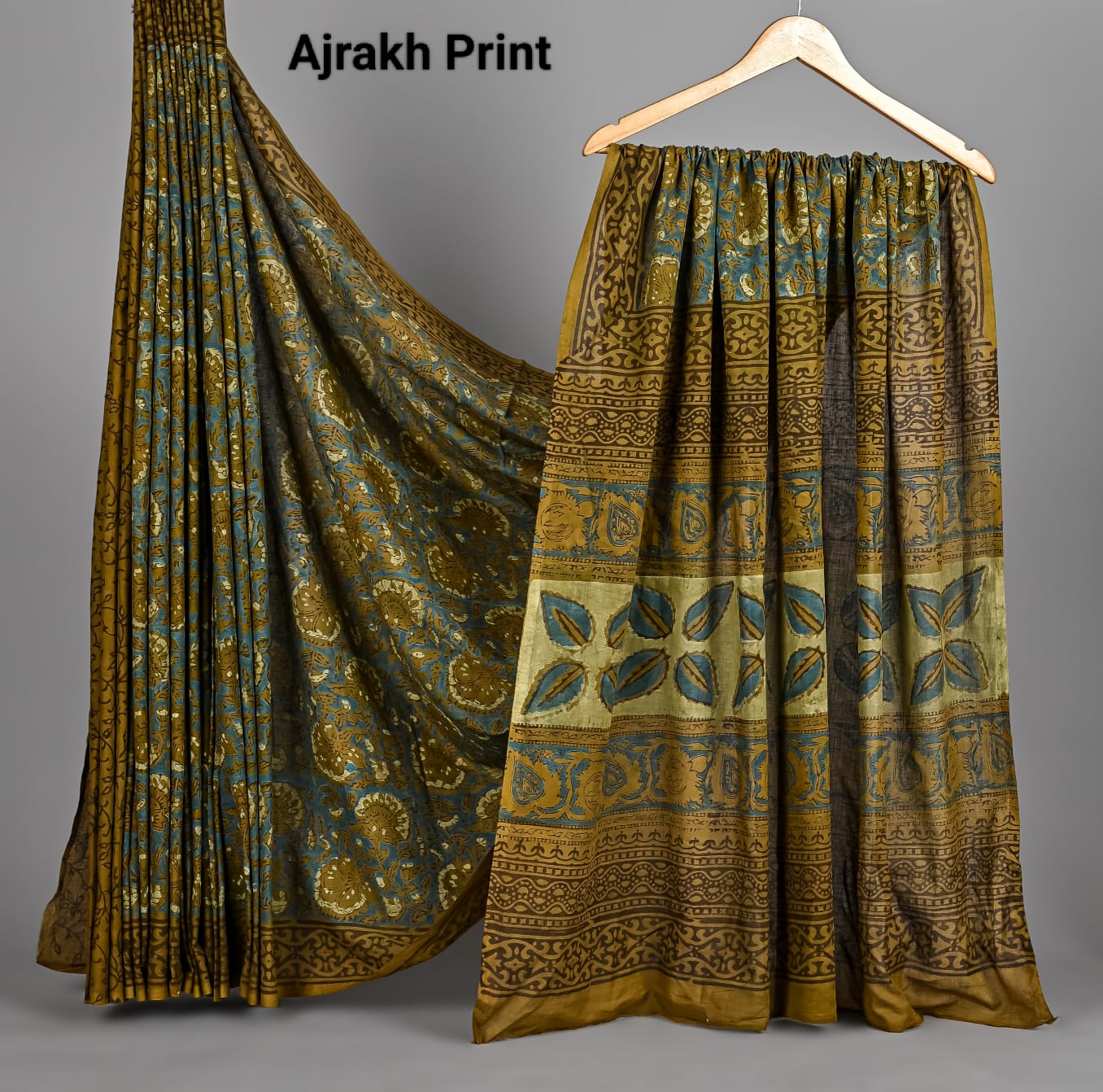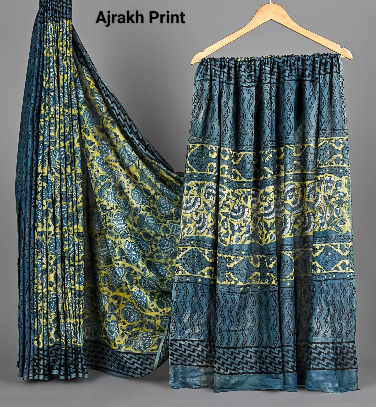 Soft Mulmul Cotton Hand Ajrakh Printed Sarees