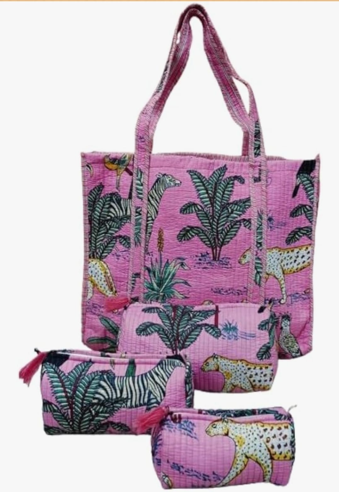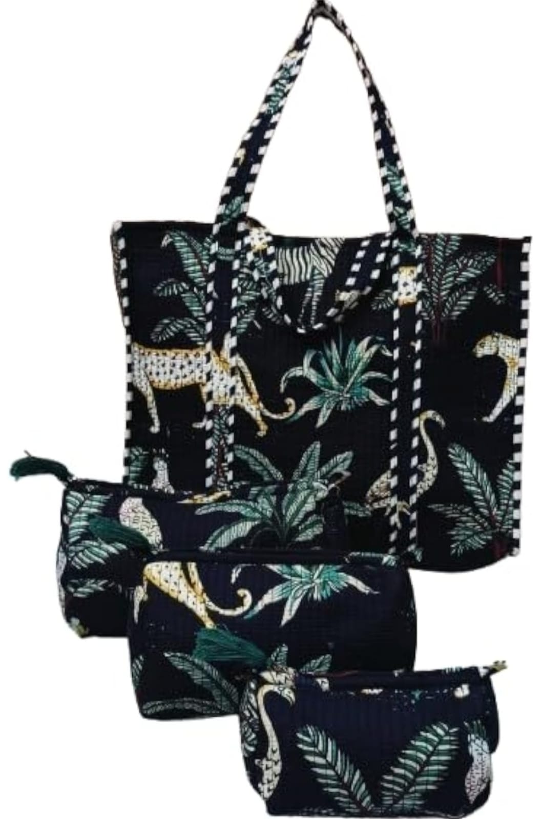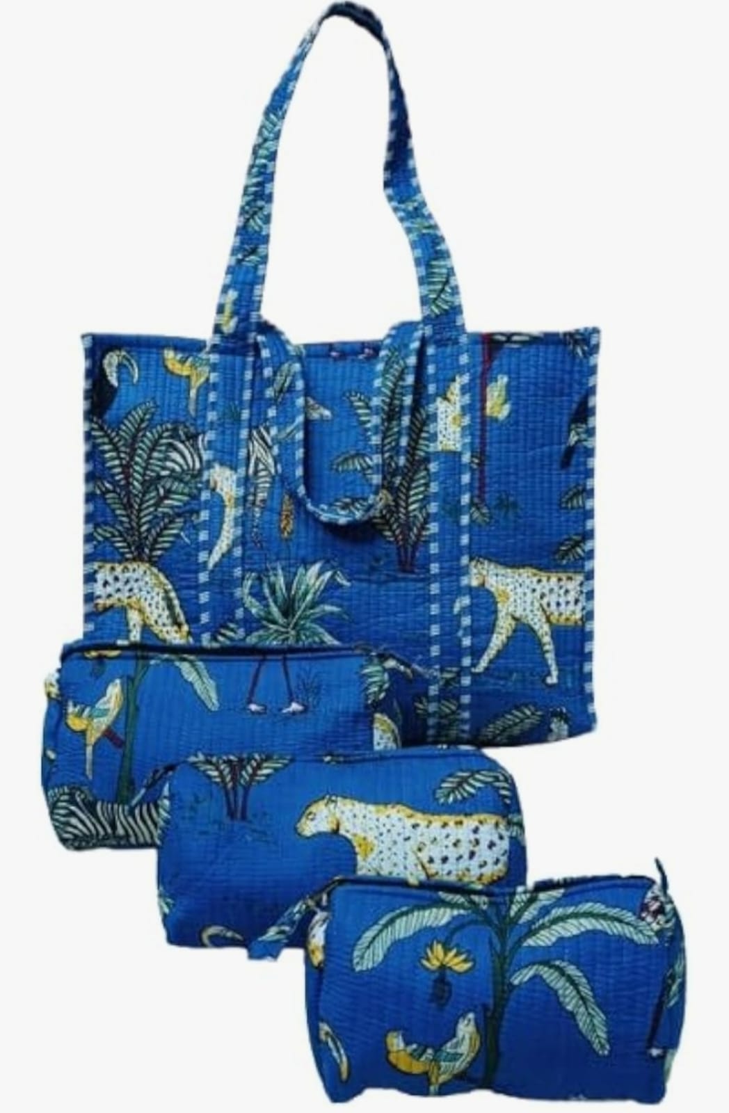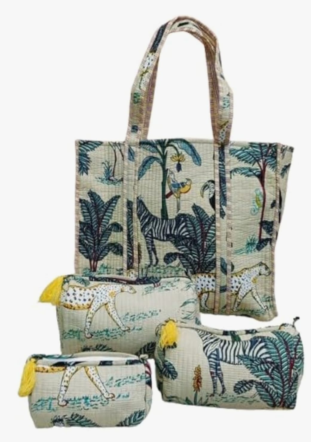 Unisex Animal Printed Cotton Tote Bag With 3 Pouches