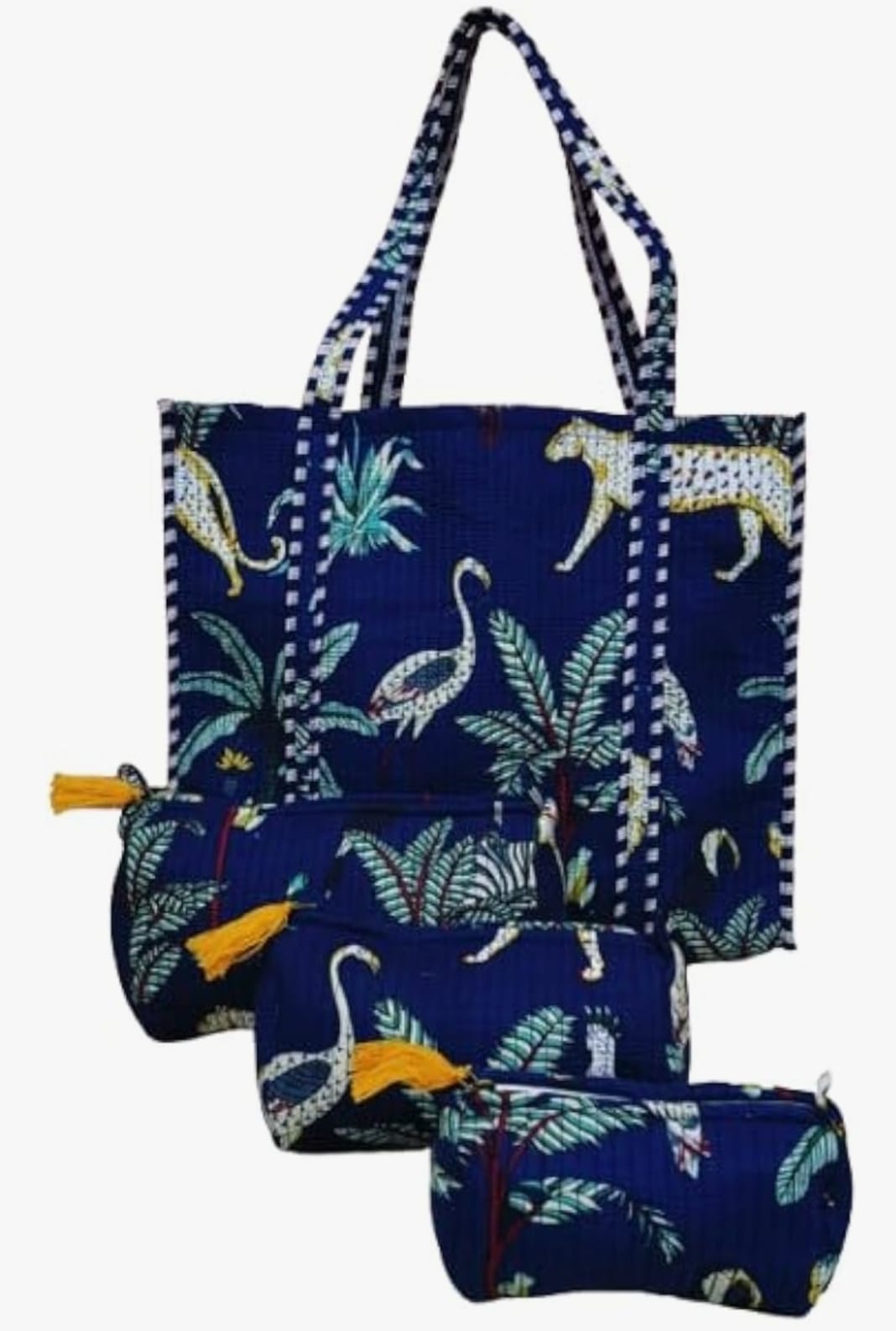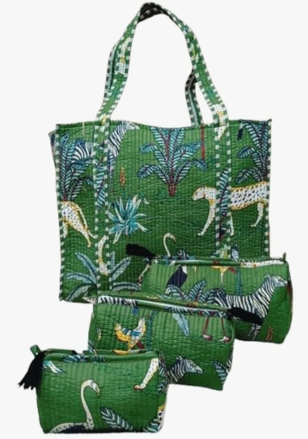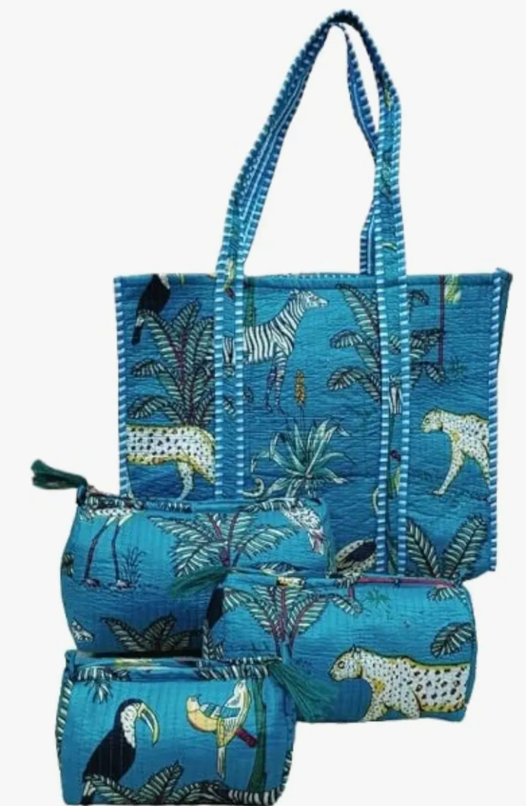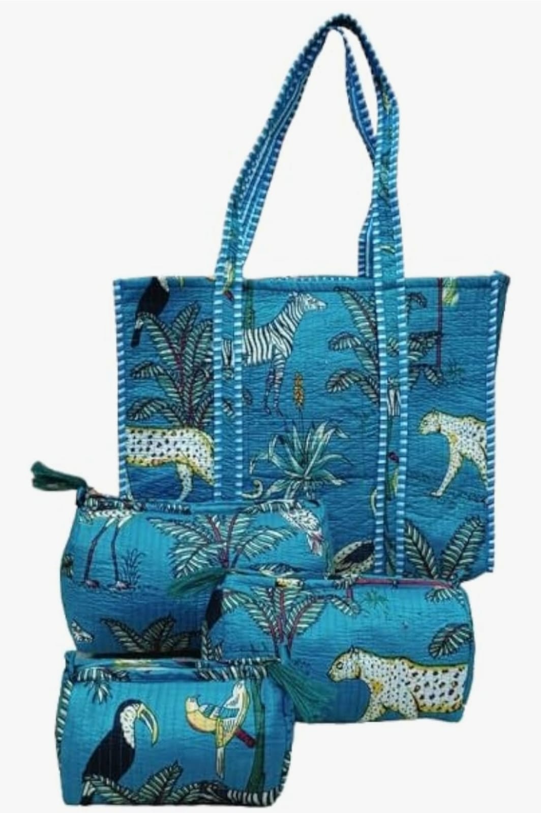 Unisex Animal Printed Cotton Tote Bag With 3 Pouches