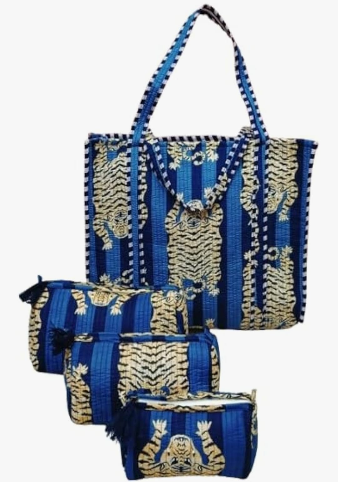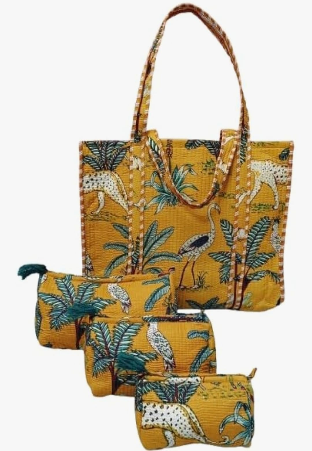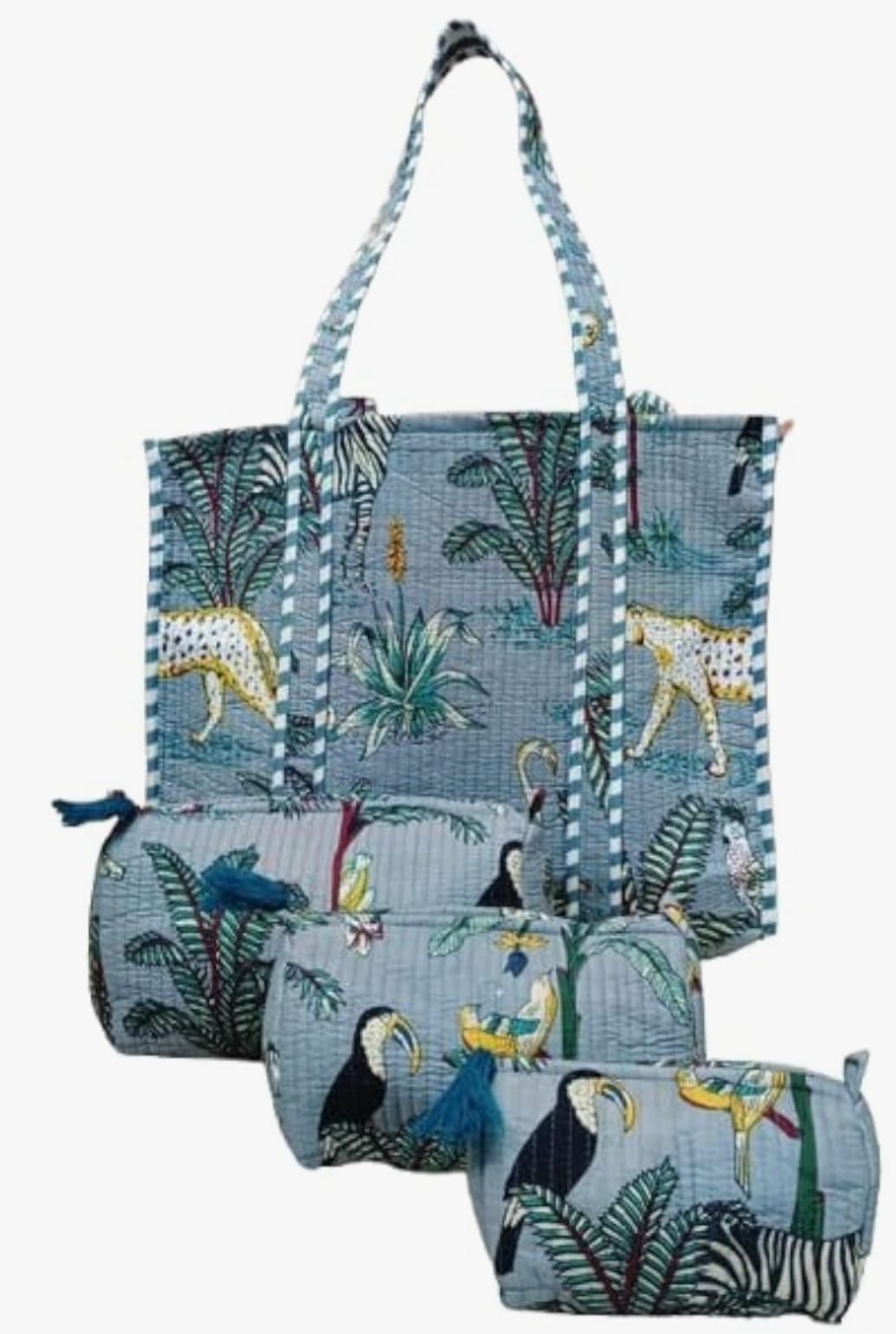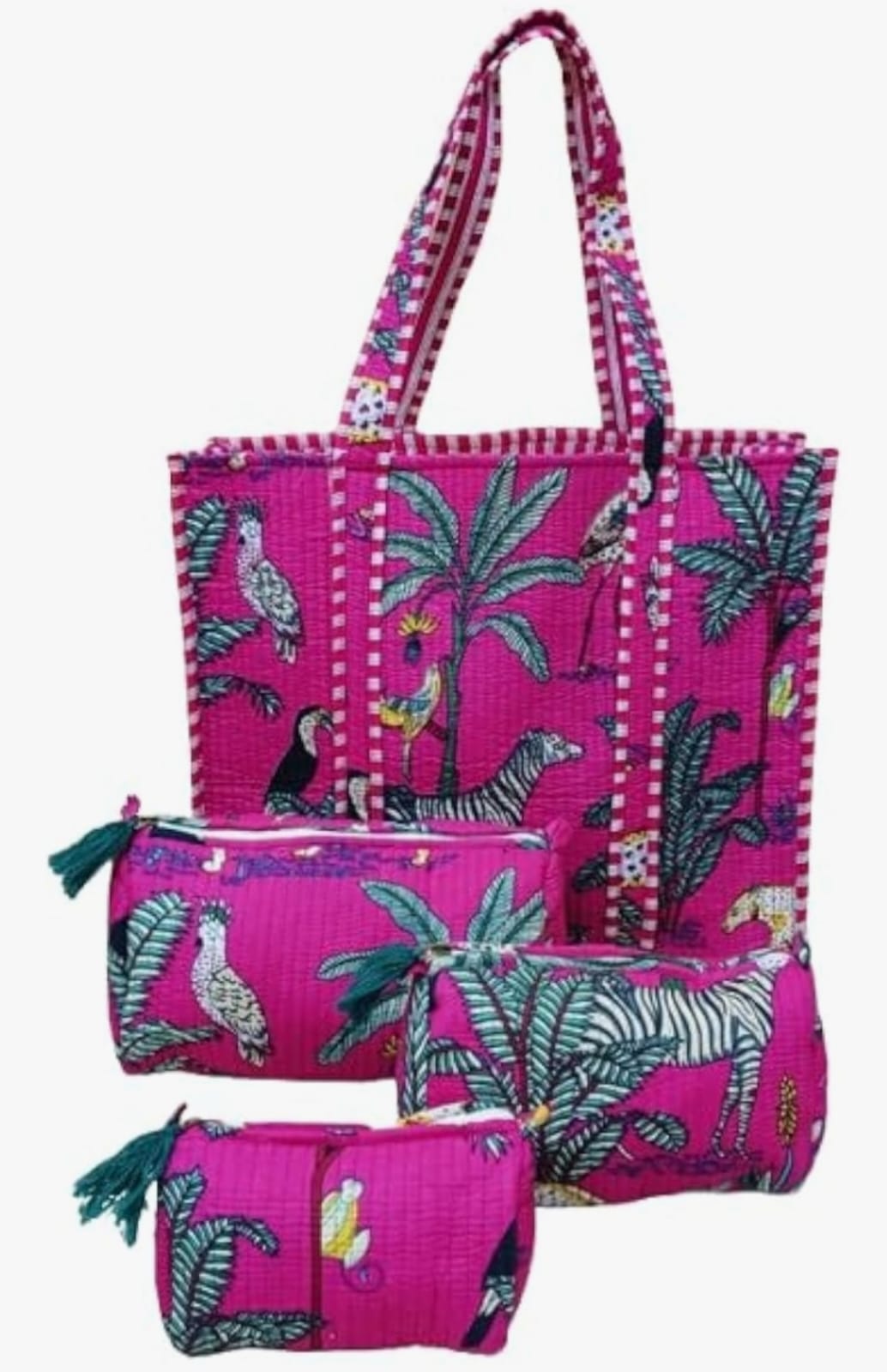 Unisex Animal Printed Cotton Tote Bag With 3 Pouches
