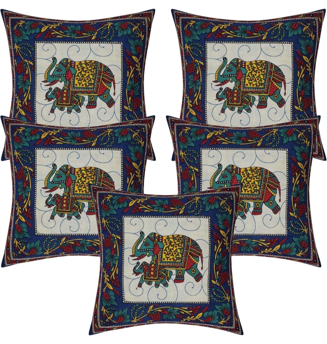 Handmade Cushion Cover, Patch Work, Block Printed, Kantha Work