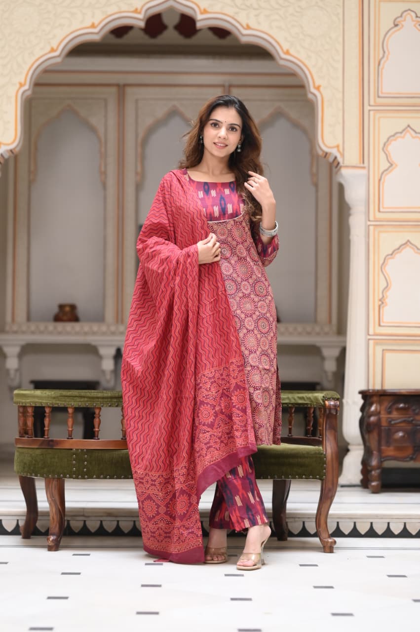 Bagru Print Hand made Cotton Stichted Suits With Mulmul Cotton Dupatta