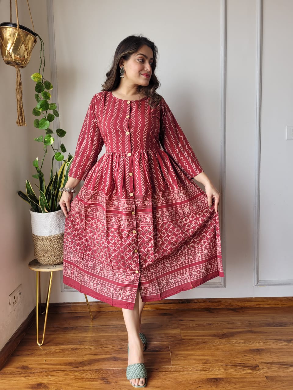 Exclusive Bagru Hand Printed Long(Penal) One Piece Dresses