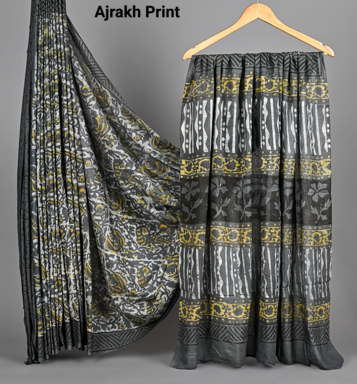 Soft Mulmul Cotton Hand Ajrakh Printed Sarees